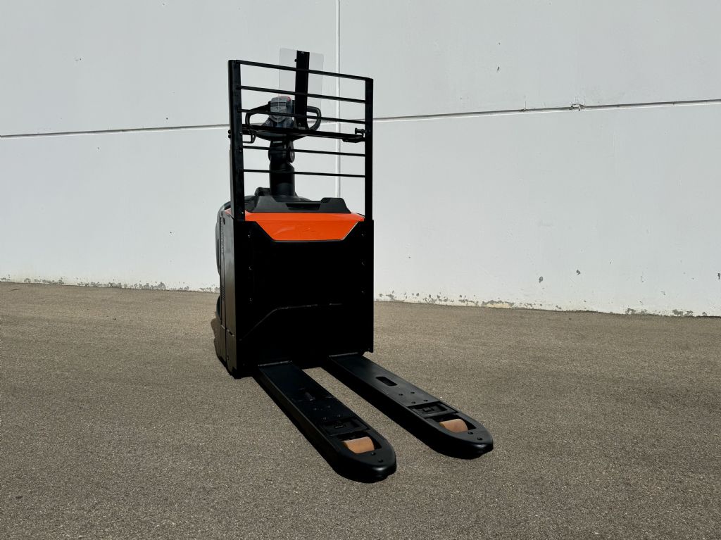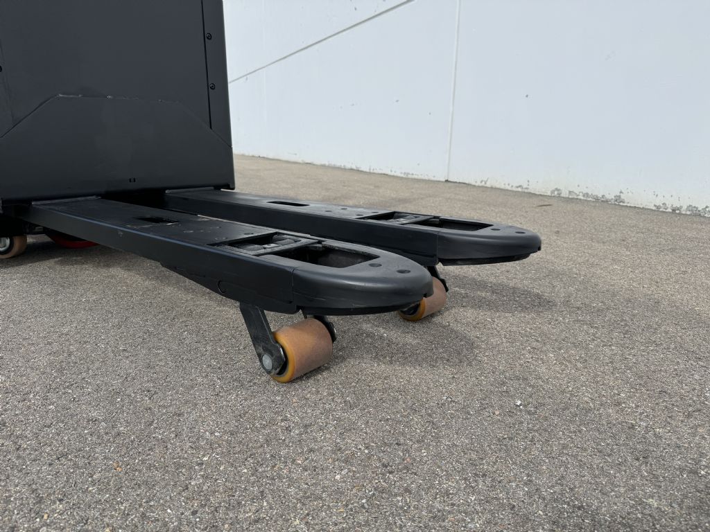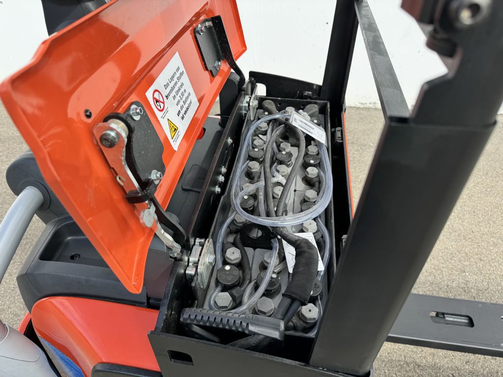Details: Aquamatik Befüllsystem, Elektrolyt Füllstandssensor, 10 km/h Version, Lenkung Servounterstützt, PIN Code aktivierung, Dokumententasche, Lastenschutzgitter, E-bar mit Schreibkonsole, Höhenverstellbare Deichsel, Fahrerplattform mit Seitenschutzbügel
