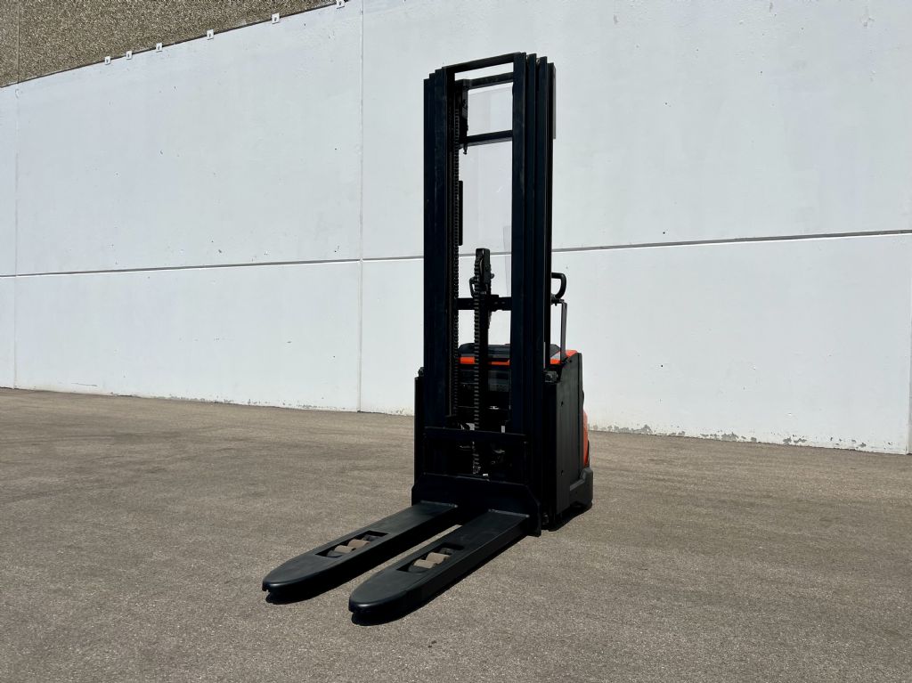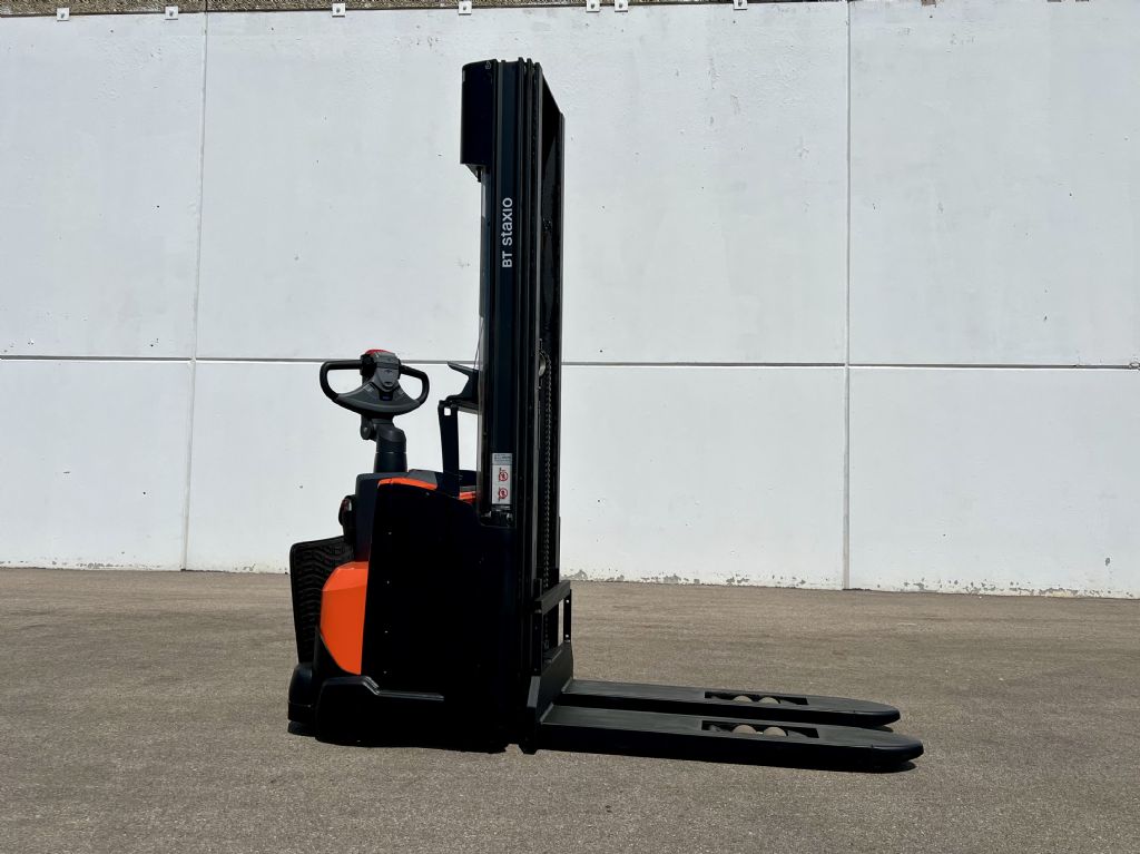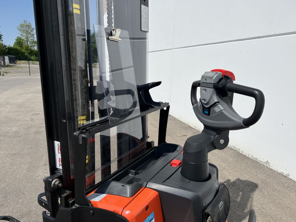 Details: Ladegerät integriert, PIN Code aktivierung, Sensilift für feinfühliges heben und senken, Lastanzeige, E-bar mit Scannerhalter und Schreibkonsole, Dokumententasche, Fahrerstand-Plattform, Tragfähigkeit im Initialhub 2000 kg, geeignet für Doppelstock Aufnahme, Gitterboxfähige Gabelzinken, Wartungsfreie Lithium-Ionen Batterie